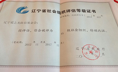 2012年11月——经辽宁省民政厅评定,辽宁爱之光防盲基金会获得4A级社会组织称号