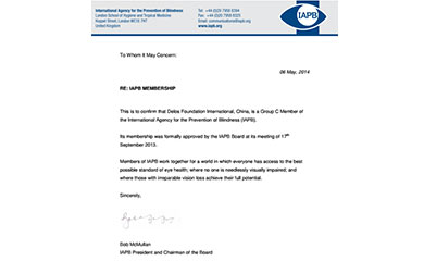 2013年10月——爱之光防盲基金会成为国际防盲协会会员
