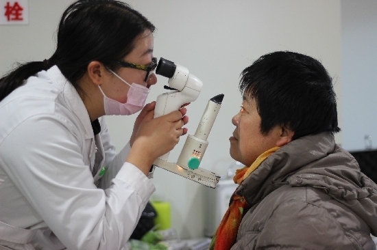医生利用眼底检眼镜,对参与者的眼底进行详细的检查,判定参与者眼底健康状况。糖尿病、高血压病人常常会伴有眼底出血和病变,可以通过眼底检查做到早发现早治疗。