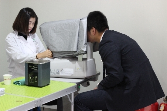 通过标准灯箱视力表和标准距离,由职业医师为参与者进行视力状况检查,此项为眼科常规检查。