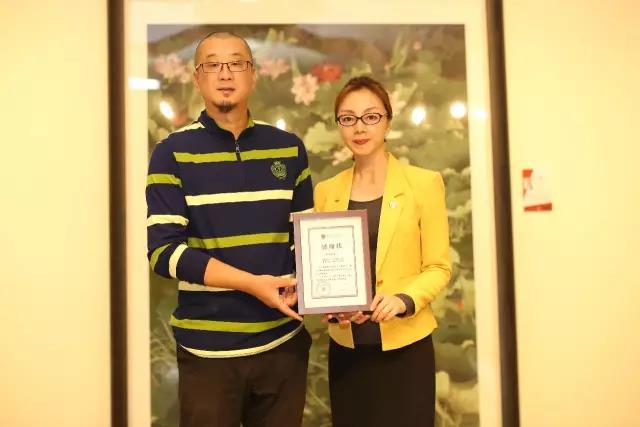 爱之光防盲基金会秘书长王芳为著名书法家郑千夫先生颁发感谢状