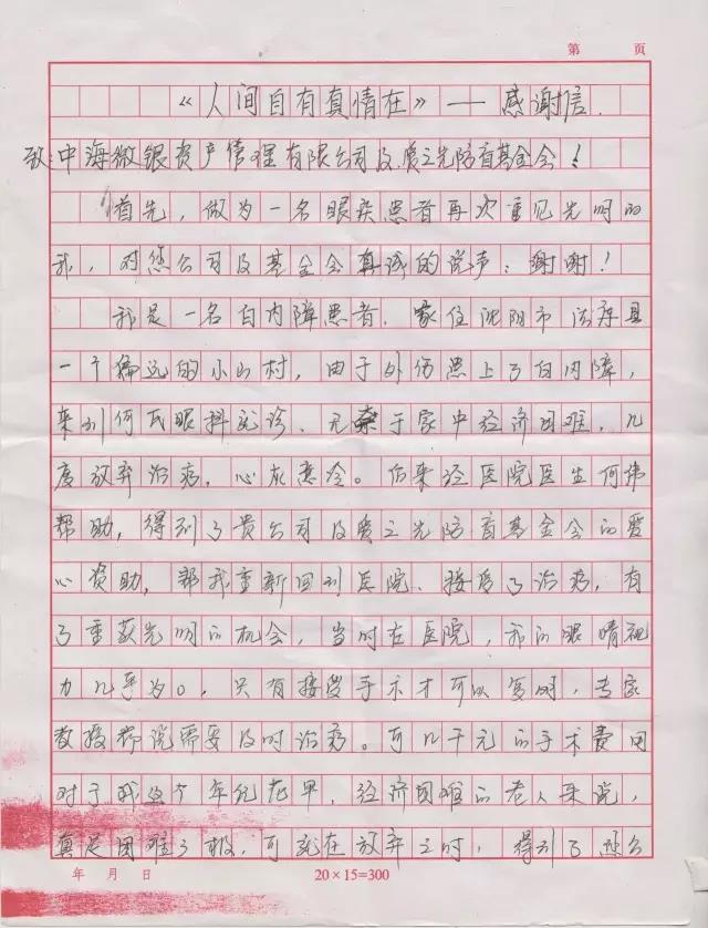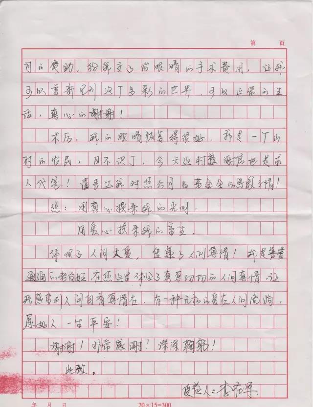 感谢你们!用真心换来了我的光明,用爱心换来了我的重生。我是普普通通的老百姓,在您这里真真切切体会了人间真情,让我感受到人间自有人情在,有一种无私的爱在人间流淌,愿好人一生平安!