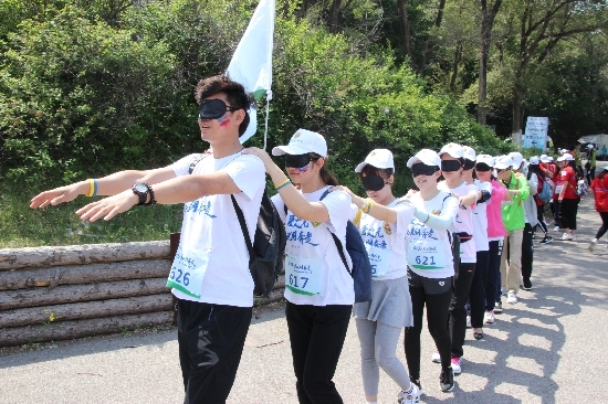 本次活动绕棋盘山秀湖行走一圈,全程13.5公里。参与者在领略棋盘山湖光山色的同时,还沿途体验了我是你的眼、珠行千里、面部彩绘、盲行等丰富多彩的游戏。盲行体验作为爱之光防盲基金会活动的特色之一,让参与者亲身体会到盲人生活的不容易,更加爱惜自己的眼睛,珍惜宝贵的光明。
