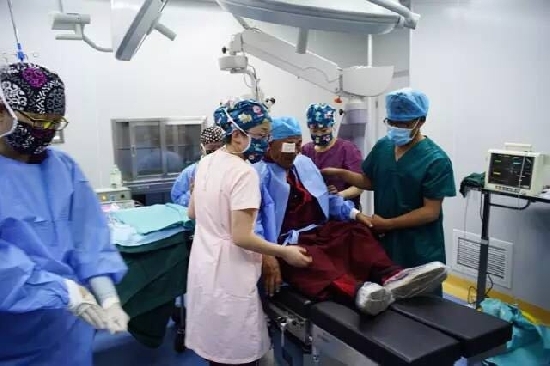随后,80岁的巴桑师傅、79岁的多吉群陪师傅也非常顺利地完成了手术,他们都是来自扎什伦布寺的德高望重的活佛,高寒缺氧气候和经年累月的佛经学习导致了师傅们的白内障病情都非常重,肉眼可以清晰看见白内障成熟期的白核。