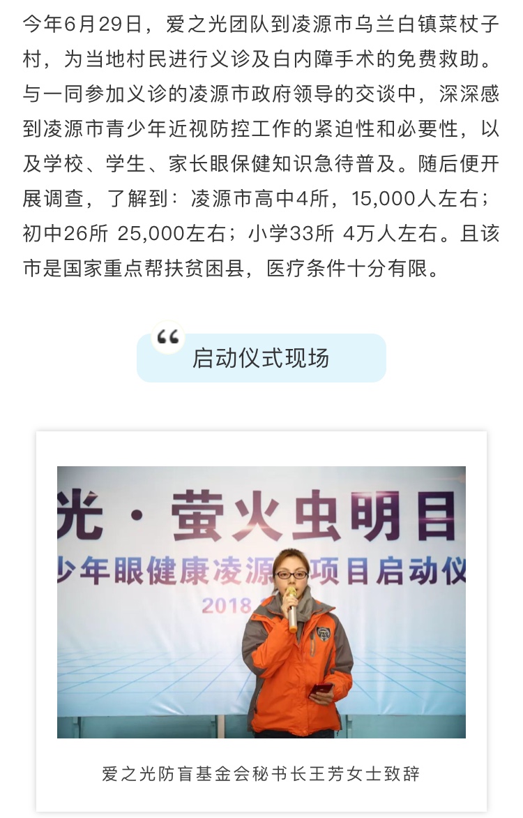 “爱之光·萤火虫明目计划”县域覆盖落地凌源