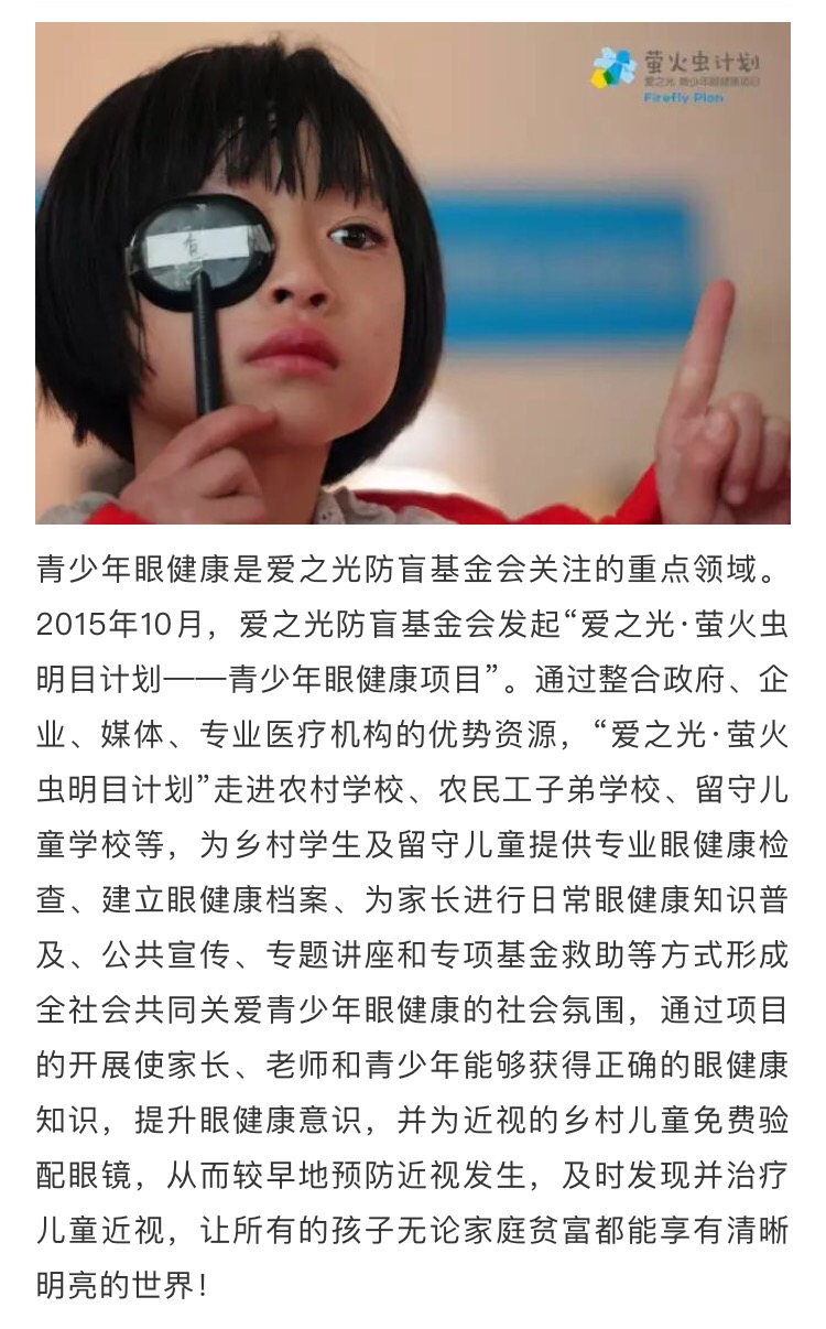 下一篇:爱之光·萤火虫明目计划ING