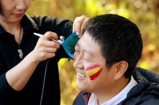 活动当天,百支爱心队伍徒步绕棋盘山秀湖一周,全程约20公里。别具特色的是,在途中主办方共设置七个打卡站:渴望光明站、携手并肩站、加油站、勇往直前站、七彩未来站、加油站、终点站。所有参赛的队伍依次体验了盲行和两人三足、跳大绳等团队拓展游戏,在行走接近尾声的时候,队员们还依次接受了专业化妆师为大家画眼妆,最后带着美美的眼妆拍照留念,团队冲向终点。一路上,有欢笑、有艰辛、有感动、有互助、有坚持、有付出、有收获……在20公里“为光明奔走”的路上,每个团队、每个队员都有属于自己的独一无二的心灵体悟。